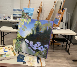 I am an exhibiting member of the RAL Art Center and I rent 6 feet of wall space in the gallery. I also volunteer for shifts as a day manager of the Gallery. This has enabled me to collect the $20 fee ($25 for non-members) weekly which allows scheduling flexibility for the artists because they don't have to commit to coming for multiple weeks in a row. Between the bookkeeping and the instruction, these days I usually just work on small tasks each week versus painting with the group. Many of the members of Open Studio now work on their own painting projects and are often working from photographs and their imaginations.